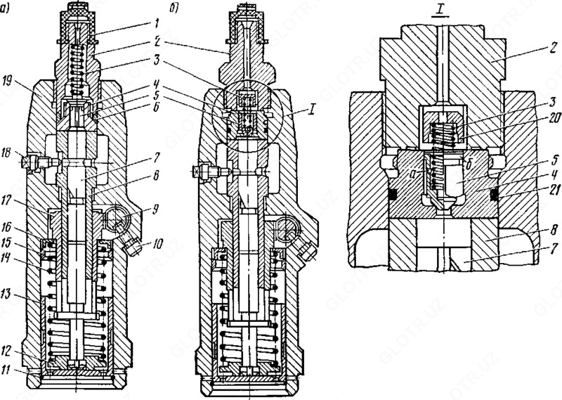 — переливного гидроклапана для поддержания заданного давления путем непрерывного слива рабочей жидкости во время работы.